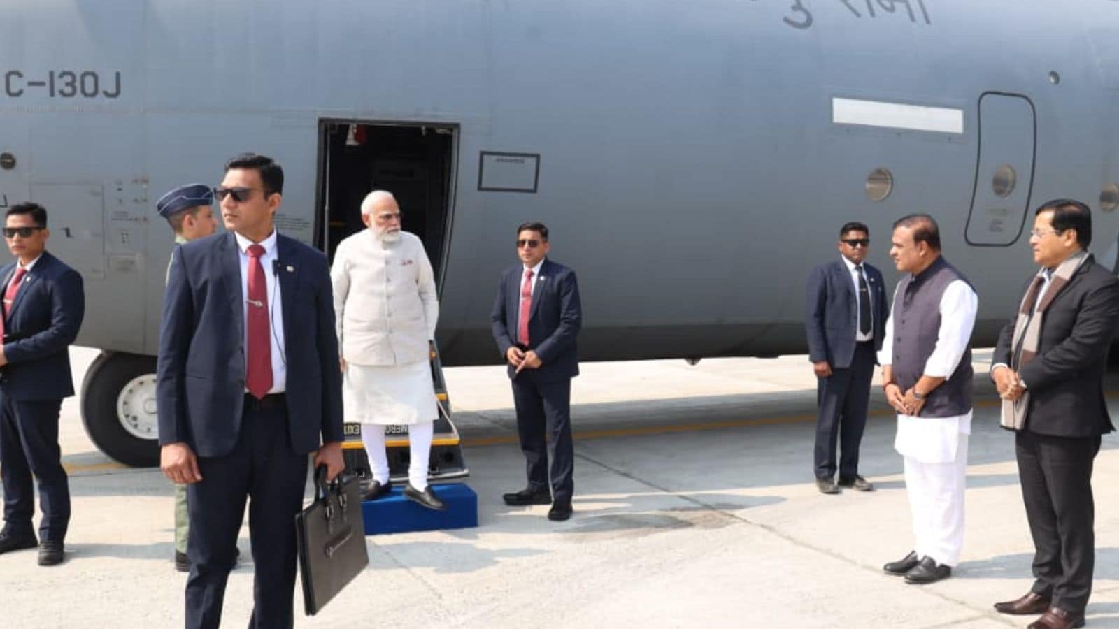 PM Modi's aircraft touched down at the specially constructed emergency landing stretch on the Moran Bypass in Assam's Dibrugarh district.
